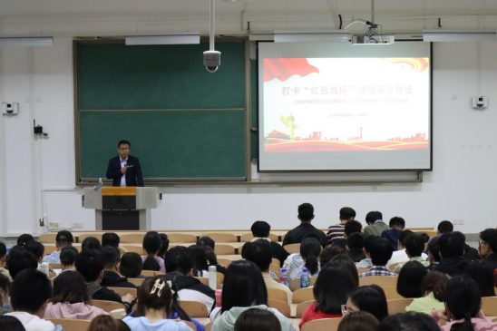 本次党史宣讲活动题目为《学党章发展历程,悟百年光辉党史》。讲座伊始,张晓宾指出红色遗址是我党的精神命脉及其重大意义。随即,他讲解到红色地标是百年党史最鲜明的历史见证。从1921年在上海兴业路102号宣告中国共产党的成立,到1927年在中国共产党领导下的南昌起义,再到1935年在贵州遵义的生死转折,再到1949年中华人民共和国的成立。张晓宾还为大家讲述红了色遗址背后的故事,非常生动,引人入胜。