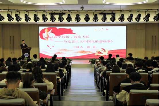 2021年4月20日,新生院在图书馆报告厅举行第1期党课第五次理论授课。党课邀请校学生处学生教育科科长韩霄老师主讲《党的指导思想》。新生院全体党课学员参加。