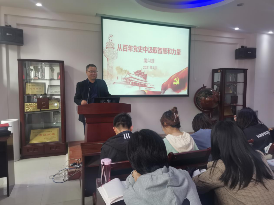 会议伊始,梁闪慧老师先解释了为什么要学习党史,并且告诉入党积极分子要深刻铭记中国共产党百年奋斗的光辉历程以及中国共产党为国家、民族和人民作出的伟大贡献。接下来,梁闪慧老师带领入党积极分子简单回顾了党史,说明了学习党史的方法。会议最后,梁闪慧老师结合实际,向入党积极分子介绍了党史的影响和启示。