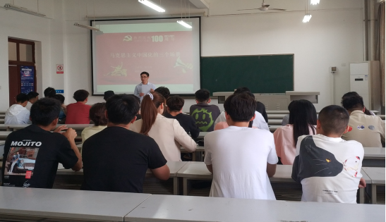 在主题班会中,夏开成以“马克思主义中国化的三个场景”为题,选取了新民主主义革命时期的三个相关场景,从陈望道翻译的《共产党宣言》首个中文全译本问世,让更多人品尝到真理的味道,到毛泽东寻乌调查期间写的《反对本本主义》,提出“没有调查,没有发言权”的真理,再到党的六届六中全会提出“马克思主义中国化”命题,通过三个党史故事的分享,向学生详细讲述了马克思主义中国化的历程。