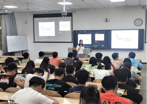 值5·25心理健康活动月之际,为更好地提高学生心理健康关注意识,培养学生有意识地认识自我、探索自我、关爱自我的习惯,学会调节、缓解学习生活中的负性情绪和强压力,提高幸福感,光电学院于5月26日19:00在教2-106举办了“阳光心态 健康人生——5.25我爱我”心理讲座。此次讲座,由学院心育员陈慧英老师主讲。2018级和2019级100余名同学聆听了讲座。
