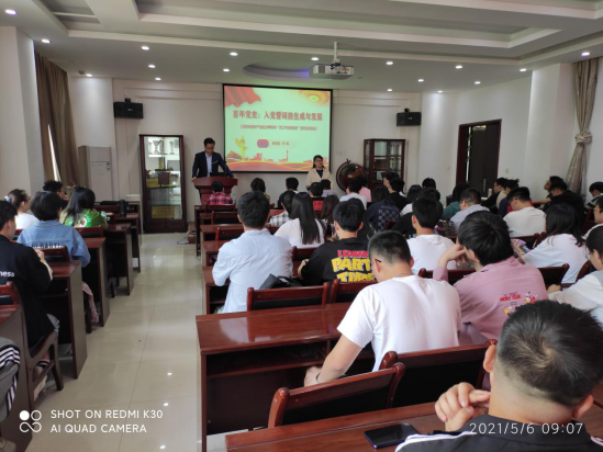 为了深入学习入党誓词生成和发展,2021年5月6日上午9时在工3-404,邀请了校学工党史宣讲团李聪老师开展了“入党誓词的生成和发展”宣讲会,材化学院张瑞红老师、以及2018级学生参与本次会议。