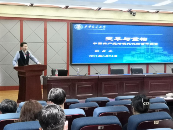 5月24日,西安交通大学马克思主义学院博士生导师刘占虎应邀为材化师生做题为《中国共产党对现代化的百年探索》的党史学习专题报告。报告会由学院党委副书记张艳霞主持。