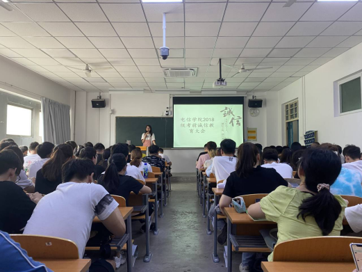 为加强考风考纪,强化考试、就业诚信意识,2021年6月16日,电子信息工程学院2018级召开“以诚立身,以信立业”诚信教育大会,辅导员毛琳主持,电子信息工程、电子信息科学与技术、通信工程等三个专业学生参会。