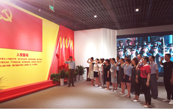 参观结束后,路金龙同志带领党员同志,面向党旗,举起右拳,重温入党誓词,铿锵有力的宣誓声响彻大厅。