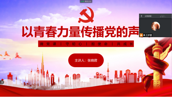 机电学院学生第八党支开展主题为《以青春力量传播党的声音》党课,由支部书记张晓君同志主讲。张晓君表示青年是未来党和国家事业发展的生力军,是思想最多元最活跃的一代,青年党员宣传党史对推动党的精神深入基层、深入群众、深入人心有着重要意义,同时也是开展党史学习教育宣讲,深化广大群众,特别是青年学生对中国共产党及其发展历程的认识,激发学生知史爱党、知党爱国热情的重要载体。可以从学生视角出发开展党史宣讲,讲好党的百年故事。