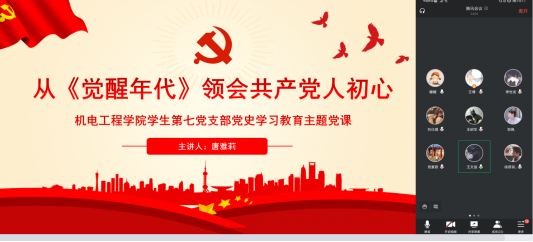 机电学院学生第四和第五党支部联合开展线上党史知识答题活动,通过线上答题的方式,增强学生对党的先进理论和知识的理解深度,带领同学们重温党史党建知识,激励广大学生积极学习党史,激发青年学生们的爱国热情。党史答题结束后,党支部继续召开党史学习心得分享会,支部成员们互相分享学习党史心得体会,支部同志纷纷表示要在今后的学习生活中,将更加严格要求自己,积极向党组织靠拢。