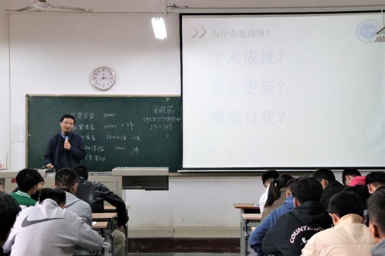 随后,董皓副院长详细介绍了机械工程学科的概况、导师情况、研究生培养平台支撑条件、联合培养基地等,同时就博士研究生的报考形势及硕士研究生就业形势向同学们做了专业的讲解,从而鼓励同学们从自身实际出发,积极报考博士研究生。