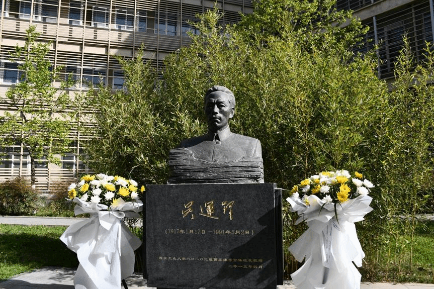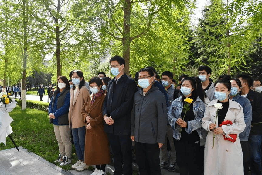 在场师生面向吴运铎雕像庄严肃穆。周顺和杨利红向吴运铎同志雕像敬献花篮,全体师生列队逐一敬献菊花,表达了对革命先烈的缅怀与“把一切献给党”精神的敬意。