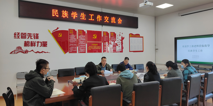 为进一步了解新疆籍少数民族学生的思想、学习和生活情况,切实加强对民族学生的教育、管理和服务工作,4月2日上午,经济管理学院在教5-520召开了民族学生工作交流会。学工部少数民族学生专职辅导员张鹏、内派教师庄玮与学院全体学工干部进行了交流。会议由学院辅导员组长曲峡主持。