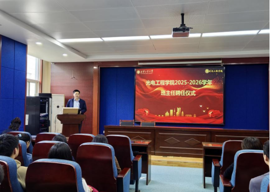 为进一步加强本科生教育管理,搭建师生沟通桥梁,深化“三全育人”体系建设,9月29日下午,光电工程学院2025-2026学年班主任聘任仪式在工6-402举行。学院党委书记周顺、党委副书记杨利红,班主任代表、本科生辅导员及学生代表共同参会,会议由学工办主任刘强珺主持。