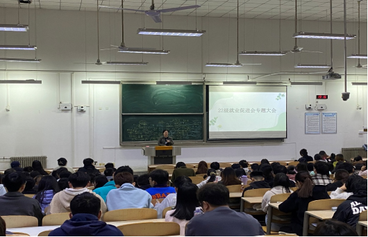 为切实做好2026届毕业生就业指导工作,帮助同学们明确就业方向、提升就业竞争力,10月28日晚,经济管理学院22级毕业生就业促进会主题大会在教1-205顺利召开。会议由毕业生辅导员张玉玲老师主持,22级毕业生参会,主要围绕就业形势分析、秋招尾期应对策略、求职经验分享及就业动员等内容展开。
