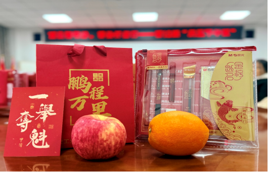活动伊始,姚敏茹代表学院向奋战在考研一线的学子们致以诚挚问候,亲手将精心准备的“研途加油大礼包”送到每位同学手中。礼包内,实用的文具套装寓意“妙笔生花”,饱满的橙子寄托“心想事‘橙’”的期许,新鲜的苹果承载“平安上岸”的祝福,而每张手写祝福贺卡都饱含着学院对学子们的殷切期盼与深切关怀,让在场学子切实感受到来自学院的温暖与支持。拿到礼包的同学们脸上洋溢着感动的笑容,纷纷表示这份关怀让备考路上的疲惫烟消云散,更添奋进动力。