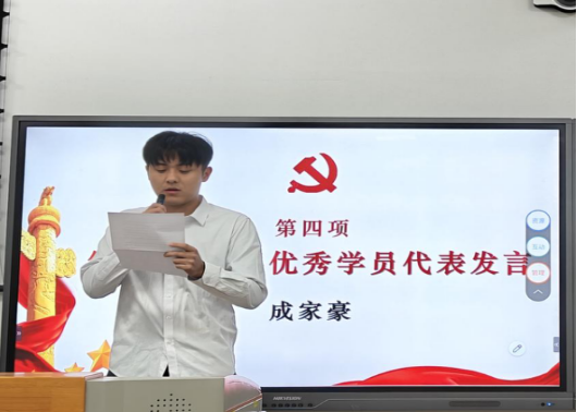 第71期积极分子代表成杨珂祺发言。他表示,我们要做到严守纪律,勤学善思;知行合一,勇担使命;团结协作,共同成长。以更饱满的热情、更扎实的行动,争取早日成为一名光荣的共产党员!