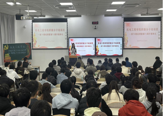 机电工程学院第70期积极分子结业典礼暨第71期积极分子开班仪式于11月20日在教1-104举办。学院党委副书记、纪委书记姚敏茹,学生党支部书记,70期和71期党课学员共计140余人参加本次活动。