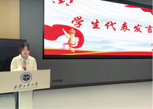 忠诚社区杨卓欣作为学生代表分享成长感悟。她表示,团学骨干成长训练营兼具理论深度、实践温度与成长厚度,理论授课和“四史”知识竞赛筑牢思想底座、学长学姐的干货分享传授工作技巧、红色教育基地实践与户外素质拓展让同学们深刻理解责任与凝聚的意义。她号召大家将把所学转化为实际行动,在日常学习工作生活中积极发挥模范带头作用,让青春在挺膺担当中绽放光彩。