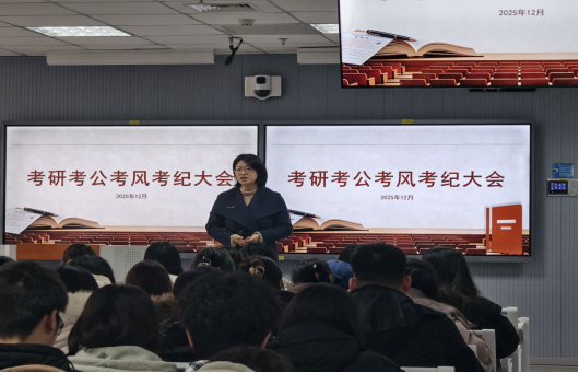 围绕考研、考公等关键考试,曲峡老师结合近年来的典型案例,深入剖析了违规行为带来的严重后果。她强调,在备考过程中必须端正态度,坚决抵制任何形式的作弊行为。对于研究生招生考试,学院特别提醒学生注意试题保密要求,严禁参与涉及考试内容的违规活动。