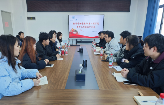 为进一步加强学院间团学工作经验交流,拓宽团学工作思路,提升学生工作质量与水平,12月17日,经济管理学院团委书记崔弘带领各学生组织负责学生一行赴机电工程学院开展团学工作交流座谈。机电工程学院团委书记安春雨及各学生组织核心骨干参与交流。