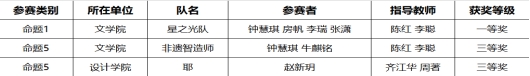 第二届中国研究生“文化中国”两创大赛全国总决赛在天津师范大学圆满落幕。我校学子在此大赛中获奖三项,其中文学院学子获一等奖一项、三等奖一项;设计学院学子获得三等奖一项。文学院陈红副教授荣获“优秀指导教师”。