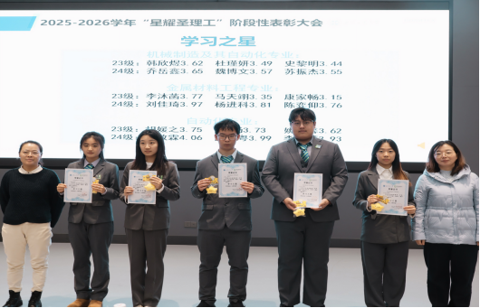 12月22日,西安圣彼得堡理工学院隆重召开2025-2026学年第一学期“星耀圣理工”阶段性表彰大会。本次大会由辅导员王朦月主持,院长刘振亭、党总支书记洪波及全体班主任与200余名学生共同参与,现场气氛庄重而热烈。旨在全面总结学院阶段性办学成果,树立先进典型,表彰在学业、竞赛、实践及综合素养等方面表现突出的优秀学生,进一步激发全院学生的进取精神与集体荣誉感。