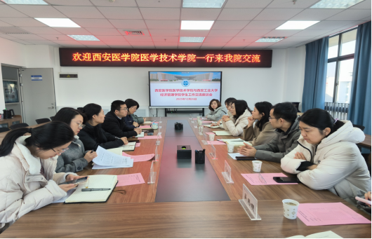 为促进学生工作经验交流、提高学工队伍管理能力、创新学生管理与培养模式,12月26日上午,经济管理学院与西安医学院医学技术学院开展学生工作交流座谈会。经济管理学院党委副书记张旭、西安医学院医学技术学院党委副书记徐景彩及两学院学工办主任、团委书记、辅导员代表参与座谈交流。本次会议旨在加强两学院学工队伍交流合作,共享育人经验,共促学生工作高质量发展。
