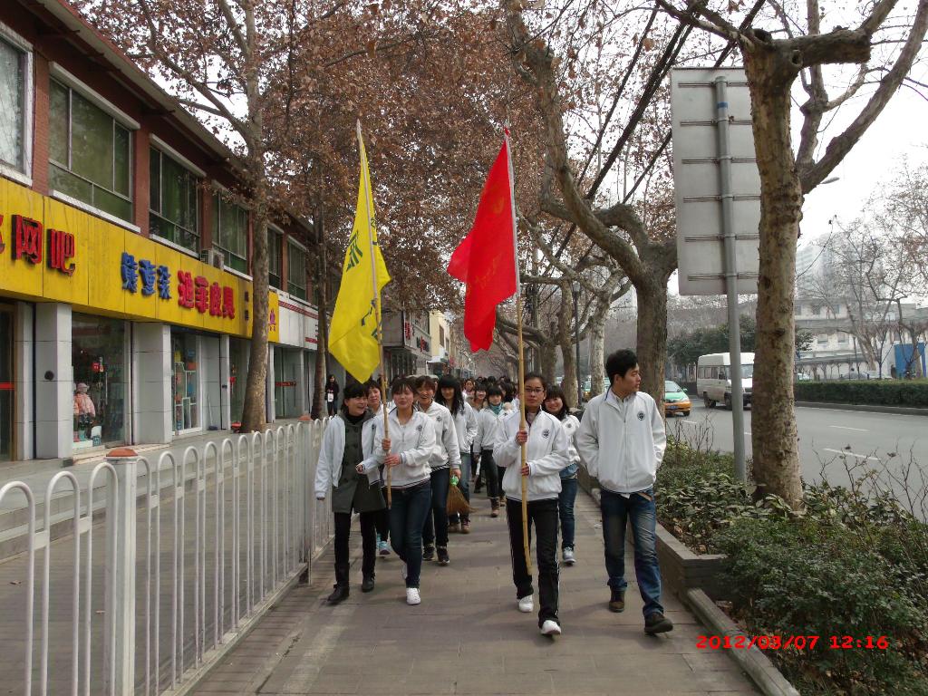 为进一步弘扬雷锋精神,构建和谐校园, 2012年3月7日,高职学院11级会计电算化专业的所有学生走出校园,开展了以“学雷锋、树新风”“环保护绿”为主题的校外义务劳动。四百多名学生志愿者以小寨十字、子午路十字、吉祥村十字为中心,打扫马路两旁卫生,清理道路两旁绿化带垃圾,用实际行动弘扬了雷锋精神,展现了当代大学生的风采,为保护环境、美化市容、擦亮西安做出了一份贡献。此次活动持续近2小时,同学们不怕脏、不怕苦、不怕累,认真负责的态度得到路人的赞许和市民的好评!