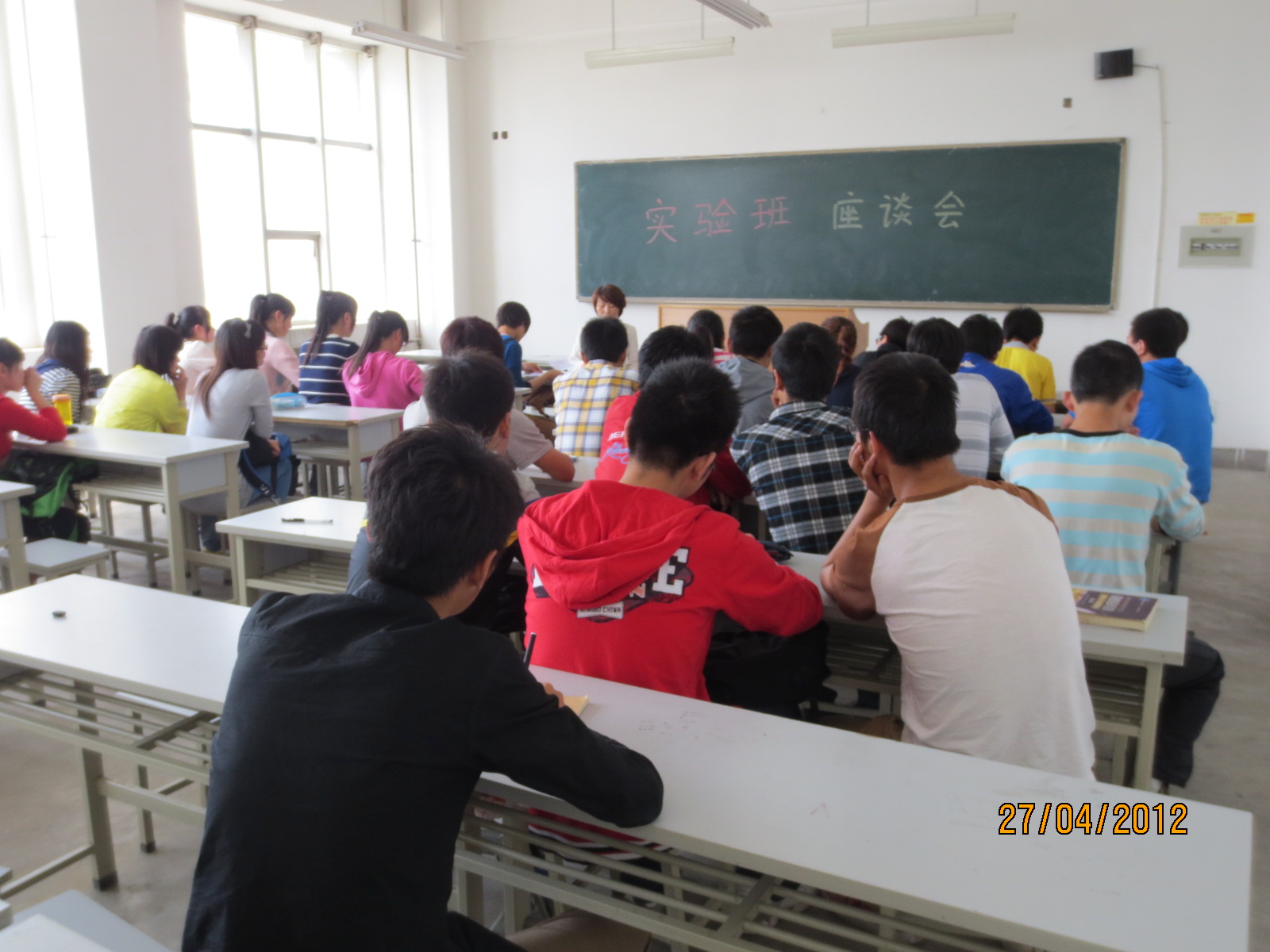 2012年4月27日,2010级自动化系统卓越工程师实验班座谈会在教A413召开,电子信息工程学院自动化系毕雪芹副主任、辅导员李茜老师以及实验班三十名同学共同参加了此次座谈会。