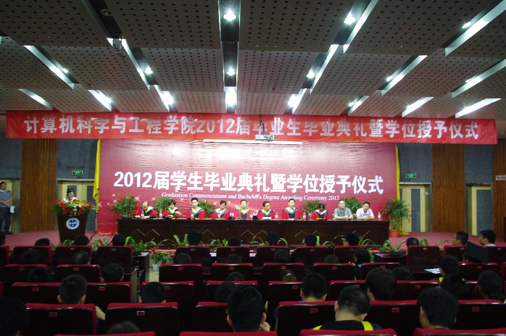 6月7日9点,计算机科学与工程学院在未央校区图书馆一楼报告厅隆重举行2012届毕业生毕业典礼暨学位授予仪式。学院党委书记张文孝教授、院长白万民教授、副院长王建国教授、容晓峰教授、各系(室)主任、各年级辅导员及2012届全体毕业生参加了仪式。