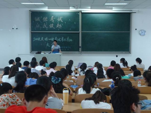 为严肃英语四六级考风考纪,2012年6月14日上午10点在教A115分两场举办了“诚信考试,从我做起”的英语四级考试考风考纪主题大会,2011级辅导员周晨和张玉玲出席了本次大会。