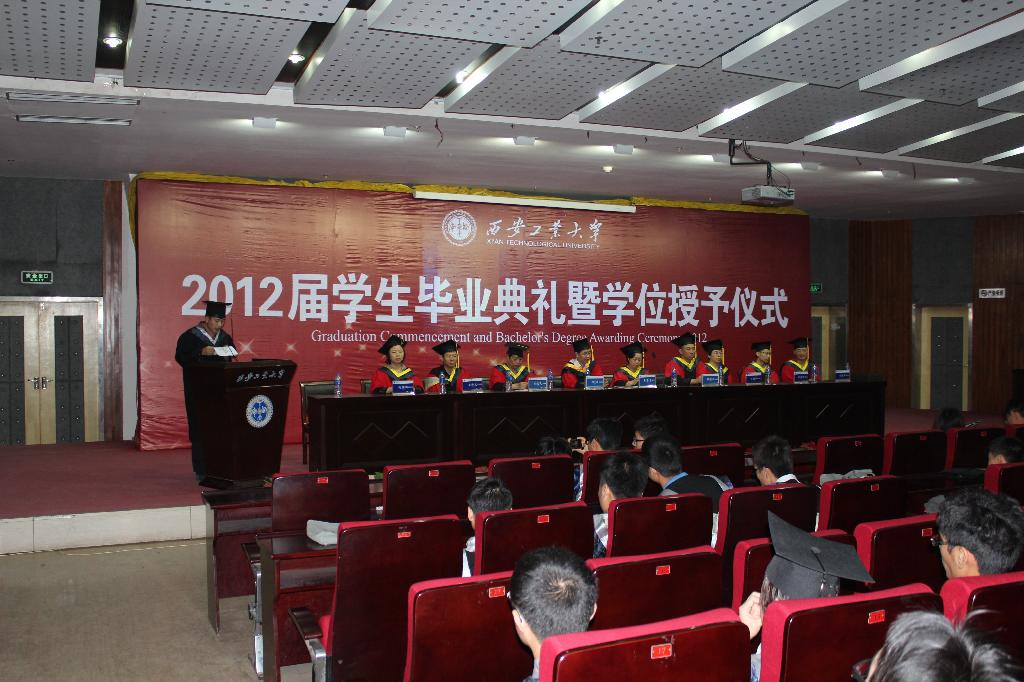 6月14日早上9:00,理学院在未央校区图书馆报告厅隆重举行 “理学院2012届毕业生毕业典礼暨学位授予仪式”,出席本次大会的有西安工业大学理学院院长李晋惠教授,党总支书记杨力教授,副院长张建生教授,副院长李选民教授,各系主任、副主任,教师代表和毕业生家长代表。