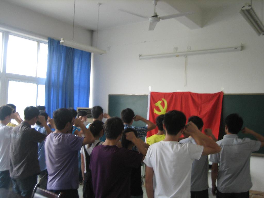 6月26日中午12:40,在激昂的《国际歌》歌声中,理学院学生第一、第二党支部在教F412举行新党员入党宣誓仪式,庆祝中国共产党成立九十一周年。全院学生党员参加了大会。