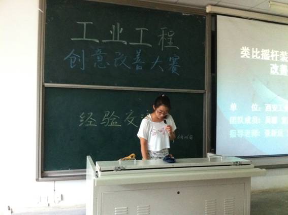 6月20—27日,机电工程学院于未央校区先后举办三场“工业工程创意改善大赛交流会”。“陕西省第三届工业工程改善创意竞赛”中获得特等奖及一等奖的吴聪、党颖、钟凯腾等人做了作品报告,机电学院2010、2011级数百名学生参加了交流。