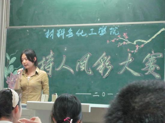 主持人风采大赛由材化学院学生会文艺部主办,大赛分三个环节:自我介绍、才艺展示、专业知识比拼。参赛的15名材化学子以多才多艺,专业知识及别具特色的台风在大赛中大方异彩。期间文艺部的助兴表演以及与观众的互动更是把现场气氛推向了高潮。最终,李娜、肖瑶荣获最具潜质奖,张瑛、贠诚荣获最具人气奖,吕超、夏本源、张焕晴、薛彤分别荣获最佳男女主持人奖。
