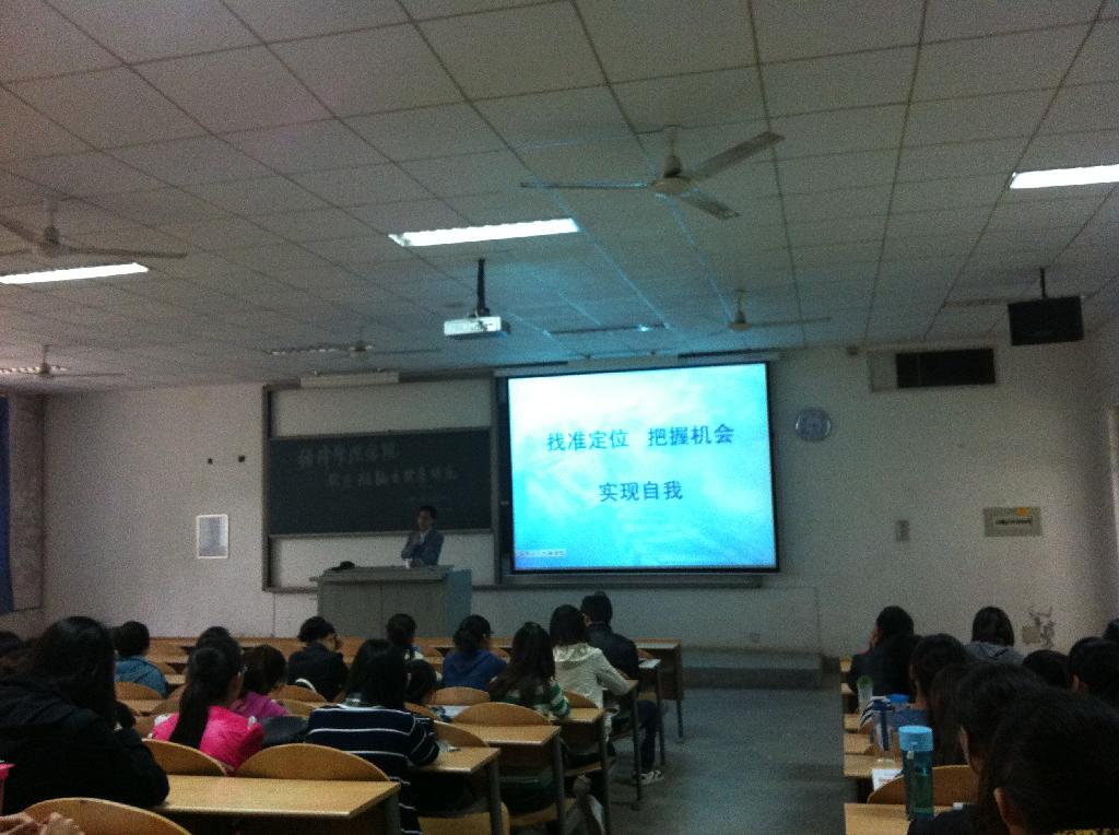 2012年10月11日,经济管理学院在C102举办09级毕业生就业指导讲座。围绕“找准定位、把握机会、实现自我”这个主题,特邀主讲人我校就业指导中心姬洪波副处长进行了精彩的讲授。