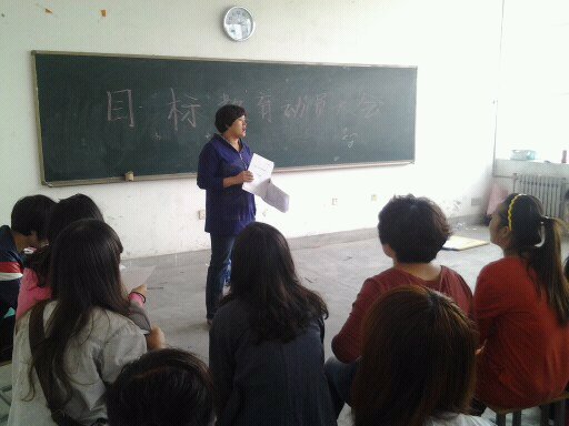 两位老师在介绍了目标的内涵、目标制定的意义以及目标制定的步骤后,新生结合自己的实际情况,开展了“我说目标”班会,并将目标落实到书面和实际行动上,对开展目标教育的目的意义、内容要求、措施途径等进行了深入浅出、活泼生动的讲解。
