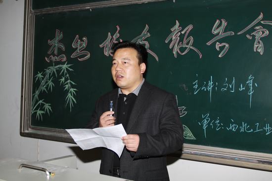 2012年10月11日下午,材料与化工学院特邀请国家杰出青年基金获得者、西北工业大学教授、我校92级金属材料专业刘峰校友为材化学院2012级新生做了一场“从西工学子成长为国家杰青的历程和感悟”的专题报告。报告会由材化学院坚增运教授主持,陈卫星教授、王国栋老师等出席了报告会。