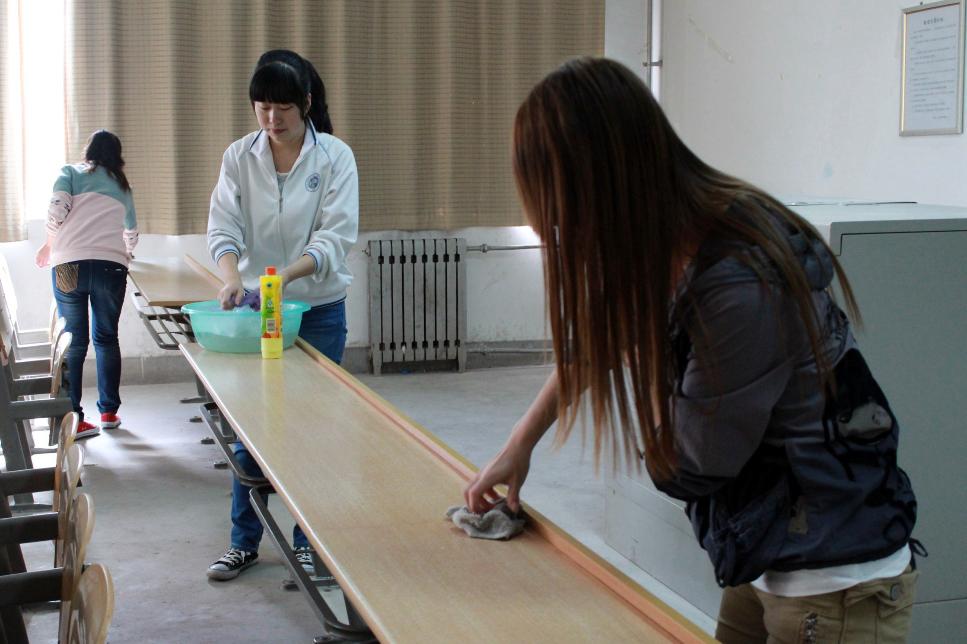 为了增强同学们的感恩之心和社会责任感,2012年10月16日12点30西安工业大学经济管理学院举行清理课桌文化义务活动。11级辅导员张玉玲老师、周晨老师带领11级全体受资助学生参加本次活动。