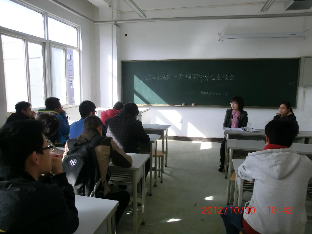 2012年10月30日上午10:20,机电工程学院于工科组团楼4B- 529教室召开留降级学生座谈会。机电工程学院辅导员姚敏茹、刘静等老师亲临现场,同留降级学生亲切交谈,释疑解惑。