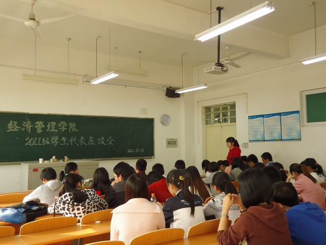 2012年10月30日下午3时25分,西安工业大学经济管理学院2011级学生代表座谈会在教A207隆重召开。2011级辅导员周晨老师、张玉玲老师和经管院11级各班学生代表参加了座谈会。