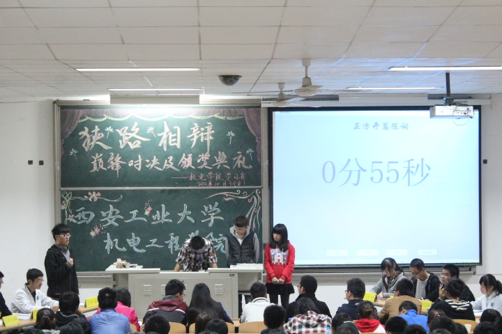 2012年10月30日晚19:00,西安工业大学机电工程学院“狭路相辩”辩论赛巅峰对决在教C203隆重举办。12级辅导员刘少姗老师,陈世磊,李月月,胡江昆等主要学生干部出席并担任本场辩论赛的评委。