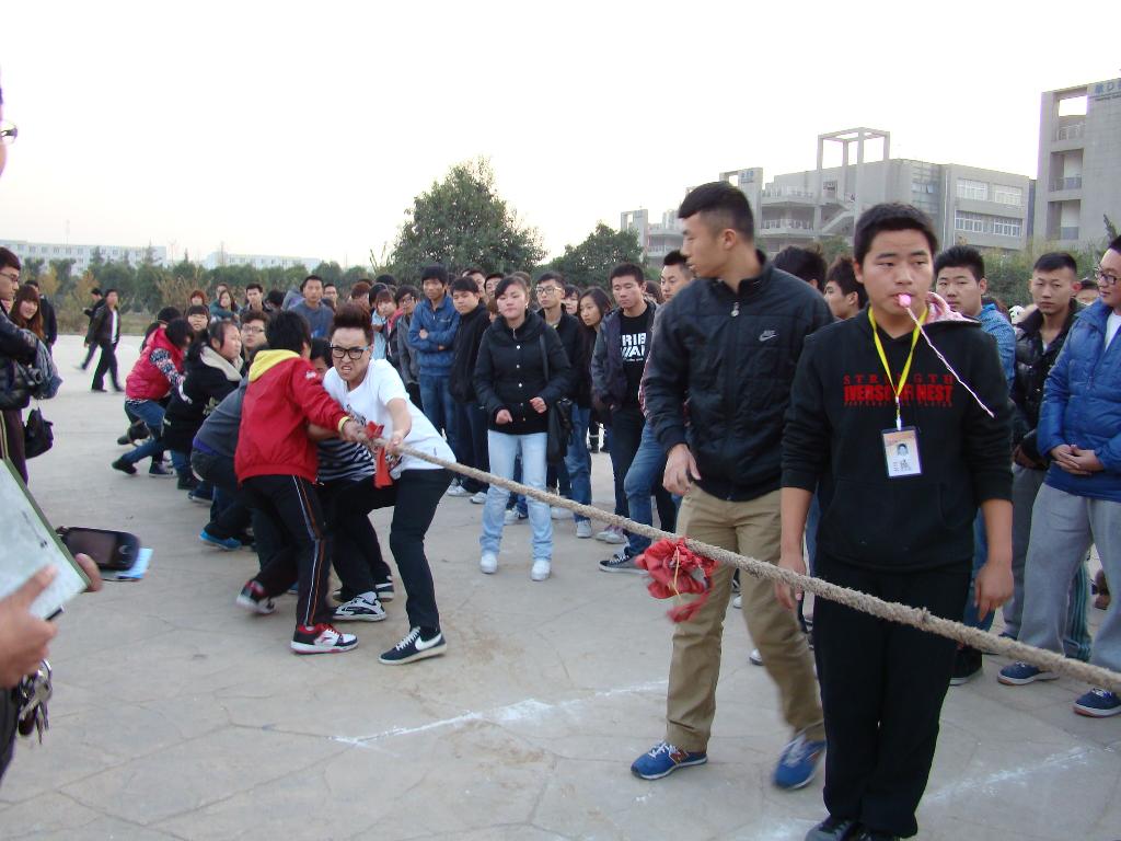 本次趣味运动以娱乐为主 ,竞赛为辅。比赛共分为五项:跳绳、拔河、海底传月、跳大绳、踢毽子、两人三腿。赛前,18个班被分成九个小组,各小组的参赛队员在场边对各比赛项目做赛前的最后训练。下午六点,比赛正式开始。在各班拉拉队的喝彩下,各队之间展开激烈角逐。尤其是第六小组(15班对阵18班)出场的“拔河”项目,15班在逆势的情况下将大绳拉回自己的地盘,18班又一鼓作气拉回地盘取得胜利,赢得可在场所有观众的掌声。最终,经过两个小时的激烈比赛,8班获得冠军、9班获得第二名、6班和12班并列获得第三名。比赛结束后,由学生会主席赵洋为各获奖团队颁奖,并与各参赛队员合影留念。