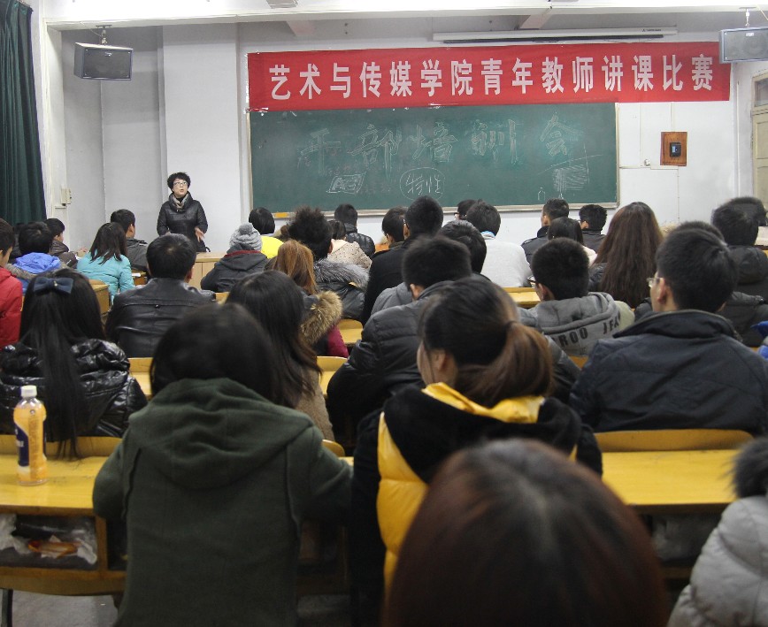 2012年12月11日晚6点,艺术与传媒学院在教3-322教室召开学生干部培训和年度学生工作总结大会,艺术与传媒学院党总支副书记金娜主讲并总结学院学生工作,学院团委、学生会学生干部和各班班长、团支书参加了培训。