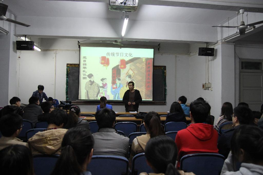 为了弘扬中国传统文化,充分利用传统节日对全体学生进行思想道德教育,2013年3月4日晚7点,艺术与传媒学院在教3楼多媒体教室举办春节文化习俗讲座。此次讲座由张晓宾老师主讲,我院学生会全体成员聆听了讲座。