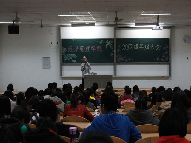 3月21日晚,经济管理学院2012级新学期目标评估与展望大会在C103召开。2012级全体学生参加,学院党委副书记程新峰出席,2012级辅导员曾灵秀主持大会。
