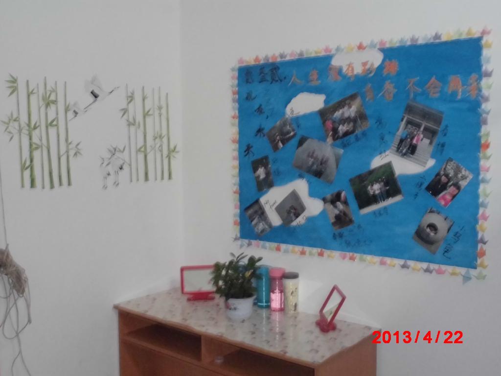 为了在学生公寓中营造良好的宿舍文化氛围,培养学生的文明意识,提升文明素质,雁塔校区学生会生活部在公寓中心老师的指导和支持下,在4月22日,进行了 2012级宿舍文化创意大赛检查验收和评比。在参赛的100多个宿舍中,共评出一等奖二个,二等奖四个,三等奖六个,奇思构想奖二个。