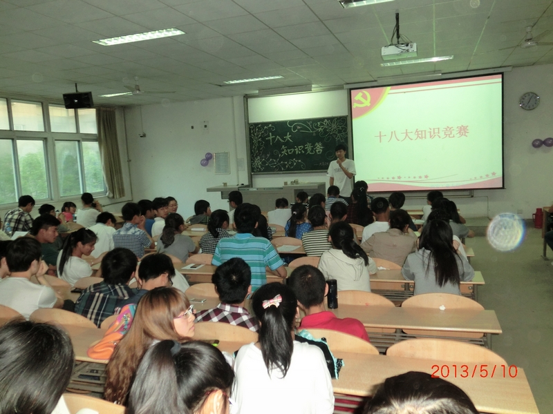 5月10日19点,电信学院在教B201举行了十八大知识竞赛。2012级共8个班7个队参加比赛。
