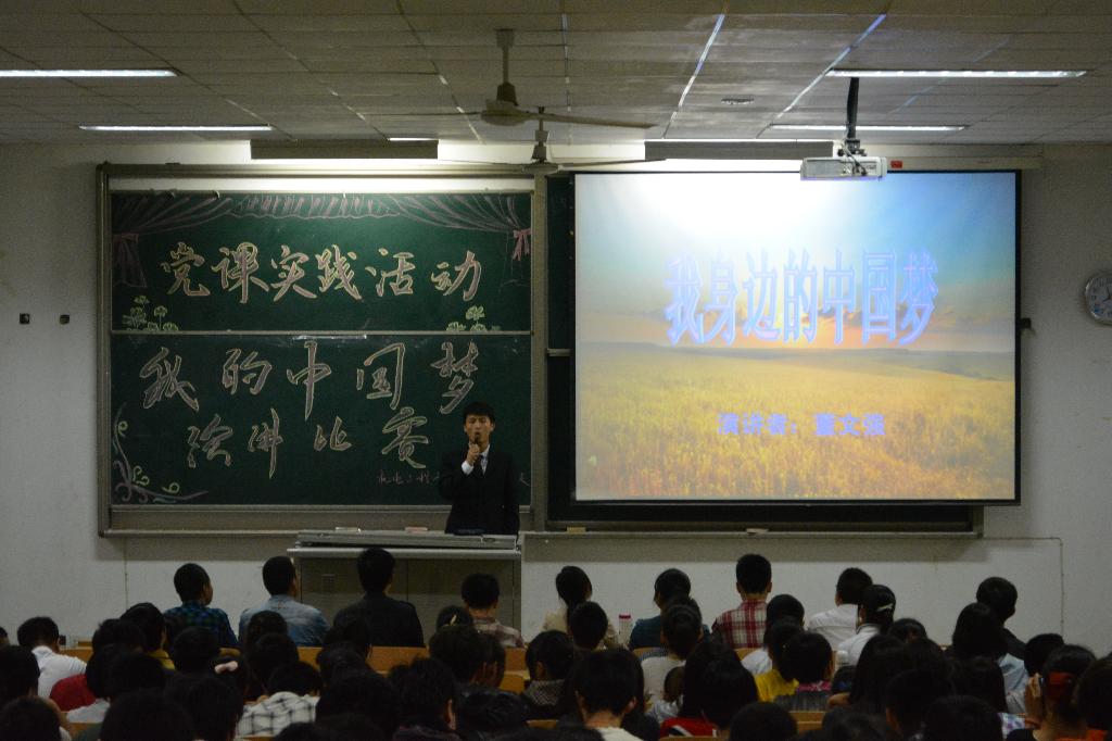 比赛通过团支部与自我报名相结合的方式,确定17位参赛选手。比赛中,各位参赛选手英姿飒爽、信心满满,用质朴、生动地语言,结合自身的学习生活畅谈了自己的梦想和目标,阐述了自己对“中国梦”的理解。少年有梦,则中国有梦,慷慨激昂的演讲,感染了全场的每一个人。经过紧张激烈的评比,来自120213班的肖刚同学凭借豪气深情的演讲取得评委们的一致认同,摘得桂冠。120220班张颖、120205班王欢、120216班董文强荣获二等奖。