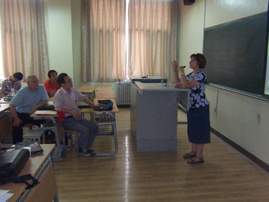 Karen Mancl教授结合自己的教学研究和工作实际,介绍了用砂生物滤池处理屠宰场污水的生物处理技术,该技术是一种非常好的污水处理方法,污水的COD去除率高达98%以上,具有节能,处理效率高,易管理等优点,非常值得推广。Karen Mancl教授以她渊博的知识和先进的学术研究带给我们一个全新的污水处理理念,使我们有机会了解到更加先进前沿的污水处理方面的知识。提问环节,学生踊跃发言,马教授都一一耐心作答,会场气氛热烈。