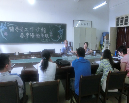 曲敏书记首先谈了学生情绪管理的重要性。曾灵秀老师讲述了春季学生情绪管理的重要性以及辅导员如何帮助学生疏导不良情绪。曾老师首先对春季学生管理的特点做了分析。因为春天易引发春困,春困易引发心理焦虑与困惑,并且春季存在气压较低,万物勃发,气候变化比较大等特点,易于影响人情绪,所以春季学生情绪管理应该考虑到春季的特点。之后曾老师对学生情绪管理提出了意见和建议。首先要教育学生养成良好的作息习惯,其次要动员学生开展适量的运动,再次要尤为注意心理问题学生的管理,最后要提高大学生的法律意识。之后曲书记对春季学生情绪管理进行了分析,并带领大家针对我院日常工作中遇到的案例进行了分析,案例囊括了学生学习生活的许多方面。各级辅导员老师针对案例进行了认真的讨论。之后程书记也讲了一个自己亲身经历过的例子,提议各级辅导员老师与学生相处应该是亦师、亦父、亦友的相处方式。