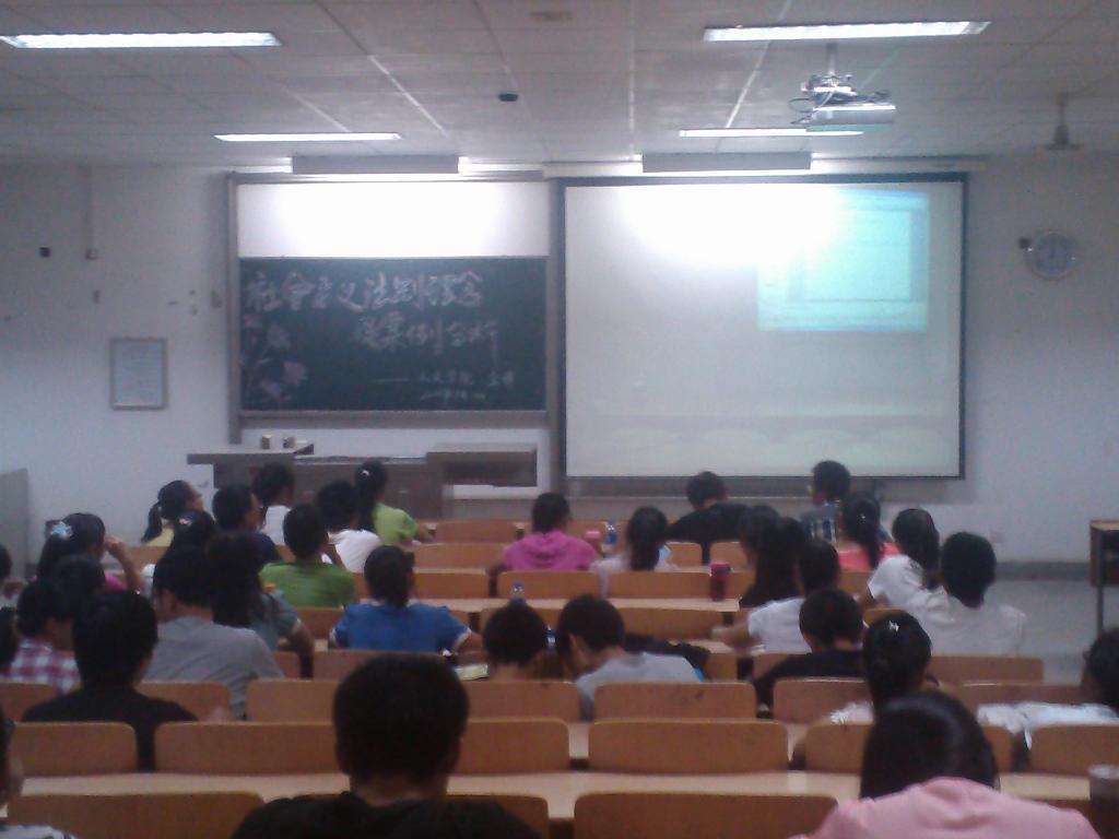2013年9月12日,材料与化工学院在组织学生在教2楼307教室观看金博教授的“社会主义法制理念及案例分析”讲座视频。